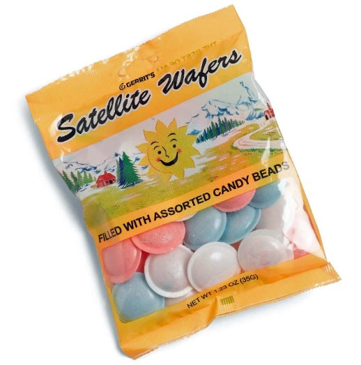 Gerrit's Satellite Wafers filled with assorted candy beads. These have been a favourite since the 1950's! (35g)