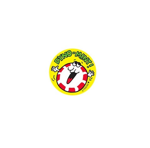 Get a whiff of this Dyno-mint!, peppermint candy-scented sticker! Break out your sticker books! These are the TREND brand Retro Scratch 'n Sniff Stinky Stickers® and they are SCENT-sational! Fun to collect, trade, and celebrate accomplishments and special occasions. Collectors will be happy to spot the ★ to distinguish TREND Retro Stinky Stickers® from those printed in the 1980s. Each pack contains 2 sheets of 12 identical stickers, perfect for sharing or trading.