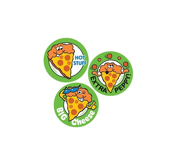 Get a whiff of this remix Extra Peppy!, Pizza-scented sticker! First there was RETRO, now there's RETRO Remix! Trend Enterprises took their iconic Scratch 'n Sniff Stinky Stickers® designs from the '80s and added a twist: multiple designs, additional messages, and sometimes a new scent. They're SCENT-sational! Fun to collect, trade, and celebrate accomplishments and special occasions. 3 different designs of the same scent in each pack with 24 stickers in all.